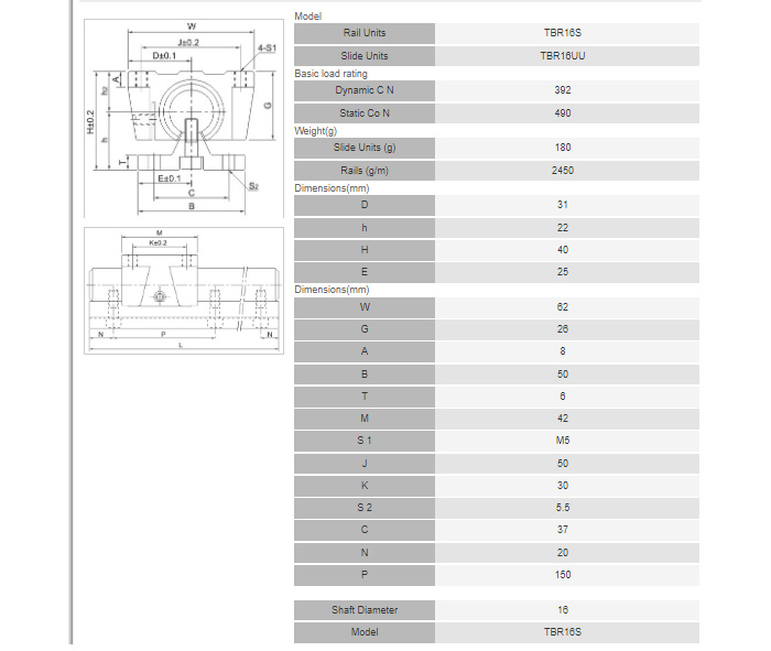 TBR16UU, TBR20UU, TBR25UU, TBR30UU